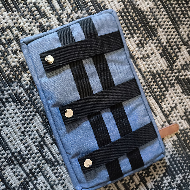Mein Modell „Paris“ ist ein mittleres Jeansblau mit passender Vordertasche sowie einer Sweatshirt-grauen Austausch-Tasche. Zusätzlich habe ich mir noch die schwarze Flaschentasche „Highland“ geleistet.