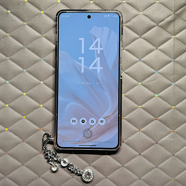 Dieses Smartphone richtet sich klar an alle Nutzer, die ein leichtes Gerät (159 Gramm!) mit hochwertigem Design möchten. Die Glitzer‑Rückseite mit Swarovski‑Kristallen ist ein echtes Highlight und macht das Edge 70 zu einem modischen Accessoire.